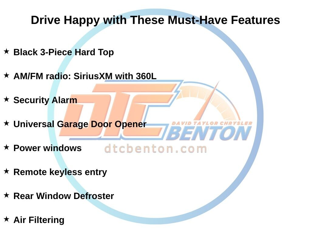 41 2026 Jeep Wrangler Sport S 4WD 8-Speed Automatic 2.0L I4 DOHC 2D Sport Utility, 8-Speed Automatic, 41, Black w/Cloth Low-Back Bucket Seats, 2-Door Passive Entry, Front Door Locks, Advanced Brake Assist, Air Conditioning w/Auto Temperature Control, Air Filtering, AM/FM radio: SiriusXM with 360L, Apple CarPlay/Android Auto, Auto High Beam Headlamp Control, Automatic Headlamps, Black 3-Piece Hard Top, Blind Spot & Cross Path Detection, Cloth Low-Back Bucket Seats, Cluster 7.0" TFT Color Display, Convenience Group, Corning Gorilla Glass, Deep Tint Sunscreen Windows, Emergency/Assistance Call, Enhanced Adaptive Cruise Control, Freedom Panel Storage Bag, Front fog lights, Front LED Fog Lamps, Full Speed Forward Collision Warning Plus, Heated Front Seats, Heated Steering Wheel, Injection Molded Black Rear Bumper, LED Headlamp & Fog Lamp Group, LED Premium Reflector Headlamps, LED Taillamps, No Soft Top, ParkSense Rear Park Assist System, ParkView Rear Back-Up Camera, Power Heated Mirrors, Power windows, Premium Wrapped Steering Wheel, Quick Order Package 22S Sport S, Radio: Uconnect 5 w/12.3" Display, Rear Window Defroster, Rear Window Wiper/Washer, Remote keyless entry, Remote Start System, Safety Group, Security Alarm, Sun Visors w/Illuminated Vanity Mirrors, Universal Garage Door Opener, Wheels: 17" x 7.5" Black Steel Styled, Wheels: 17" x 7.5" Gray.