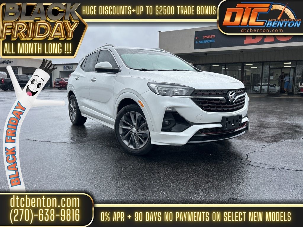 White Frost Tricoat 2022 Buick Encore GX Select FWD CVT ECOTEC 1.3L Turbo Encore GX Select, 4D Sport Utility, FWD, 18" Aluminum Wheels, 2 USB Ports w/Auxiliary Input Jack, 8-Way Power Driver Seat Adjuster, Auto High-beam Headlights, Body Color Rocker Moldings, Body-Color Bodyside Moldings, Custom Grille w/Red Accents, Enhanced Performance 6-Speaker System, Front Bucket Seats, Front dual zone A/C, Front fog lights, Fully automatic headlights, Hands Free Power Liftgate, Hands-Free Power Liftgate Package, Heated Driver & Front Passenger Seats, Preferred Equipment Group 1SD, Radio: 8" Diagonal Buick Infotainment System, Red Front & Rear Bumper Protective Molding, Remote keyless entry, SiriusXM Radio, Sport Front Bumper w/Red Accents, Sport Rear Bumper w/Red Accents, Sport Touring Badge, Sport Touring Package, Wireless Apple CarPlay/Wireless Android Auto.