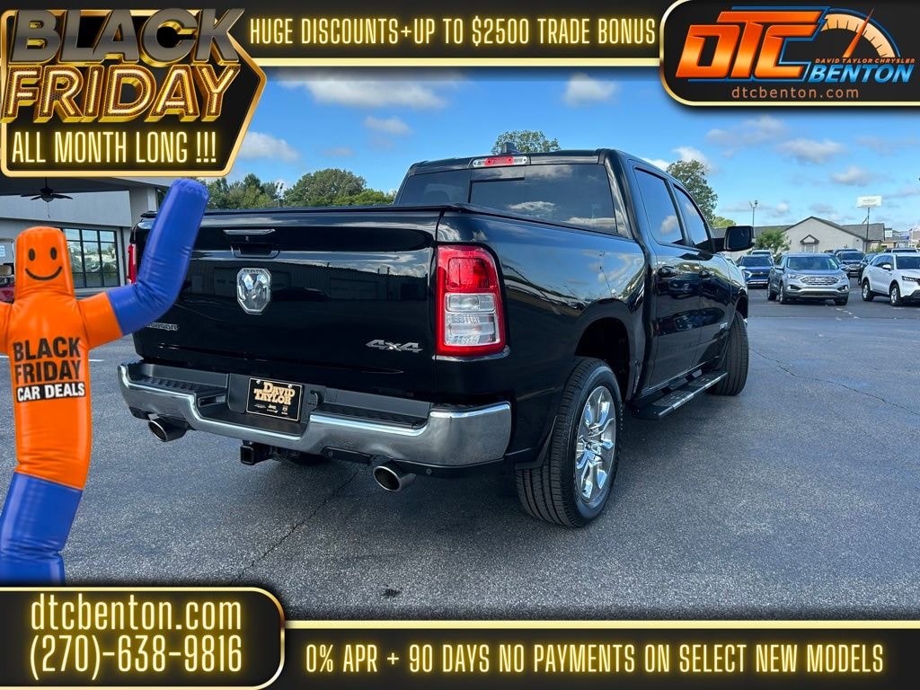 Diamond Black Crystal Pearlcoat 2022 Ram 1500 Big Horn/Lone Star 4WD 8-Speed Automatic HEMI 5.7L V8 Multi Displacement VVT 1500 Big Horn/Lone Star, 4D Crew Cab, 4WD, Diamond Black Crystal Pearlcoat, 115V Auxiliary Power Outlet, 115V Auxiliary Rear Power Outlet, 4G LTE Wi-Fi Hot Spot, Air Conditioning ATC w/Dual Zone Control, AM/FM radio, Apple CarPlay, Big Horn Level B Equipment Group (DISC), Bluetooth Handsfree Phone & Audio, Front fog lights, Google Android Auto, Heated Front Seats, Heated Steering Wheel, Media Hub w/2 Charge Only USBs, ParkSense Front/Rear Park Assist w/Stop, ParkView Rear Back-Up Camera, Power 8-Way Driver Seat, Remote keyless entry, SiriusXM Satellite Radio, USB Host Flip.